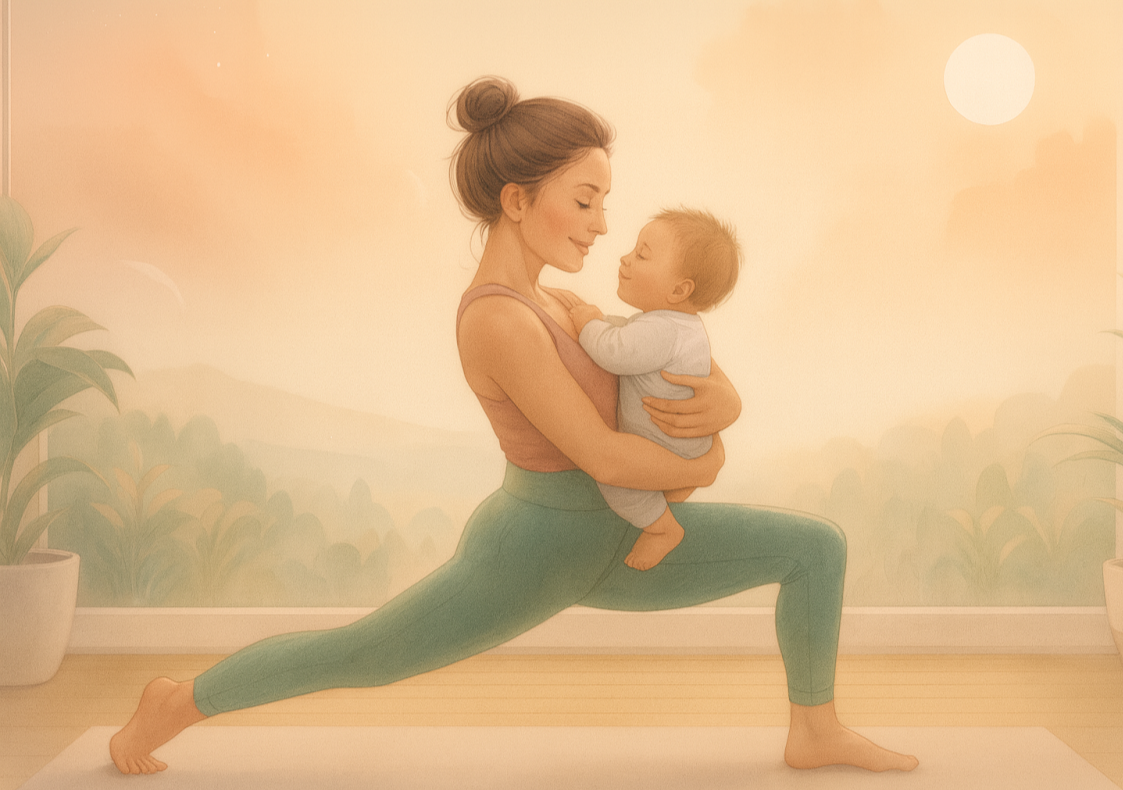 Ateliers doux et ludiques dès ~6 mois post-partum (bébés 6–18 mois) pour se remettre en mouvement et renforcer le lien. Petits groupes, rythme adapté, cadre intime et bienveillant.